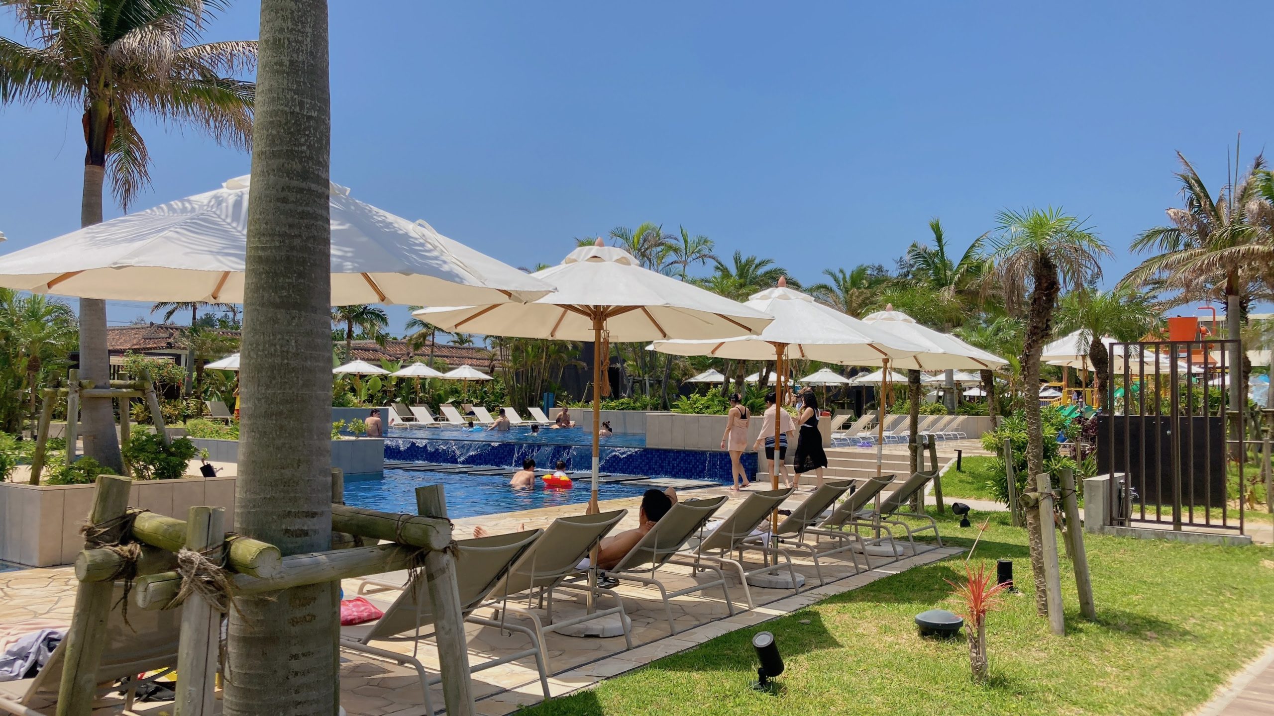 ビーチパラソルにヤシの木・・・リゾート感をバンバン感じさせてくれますね。